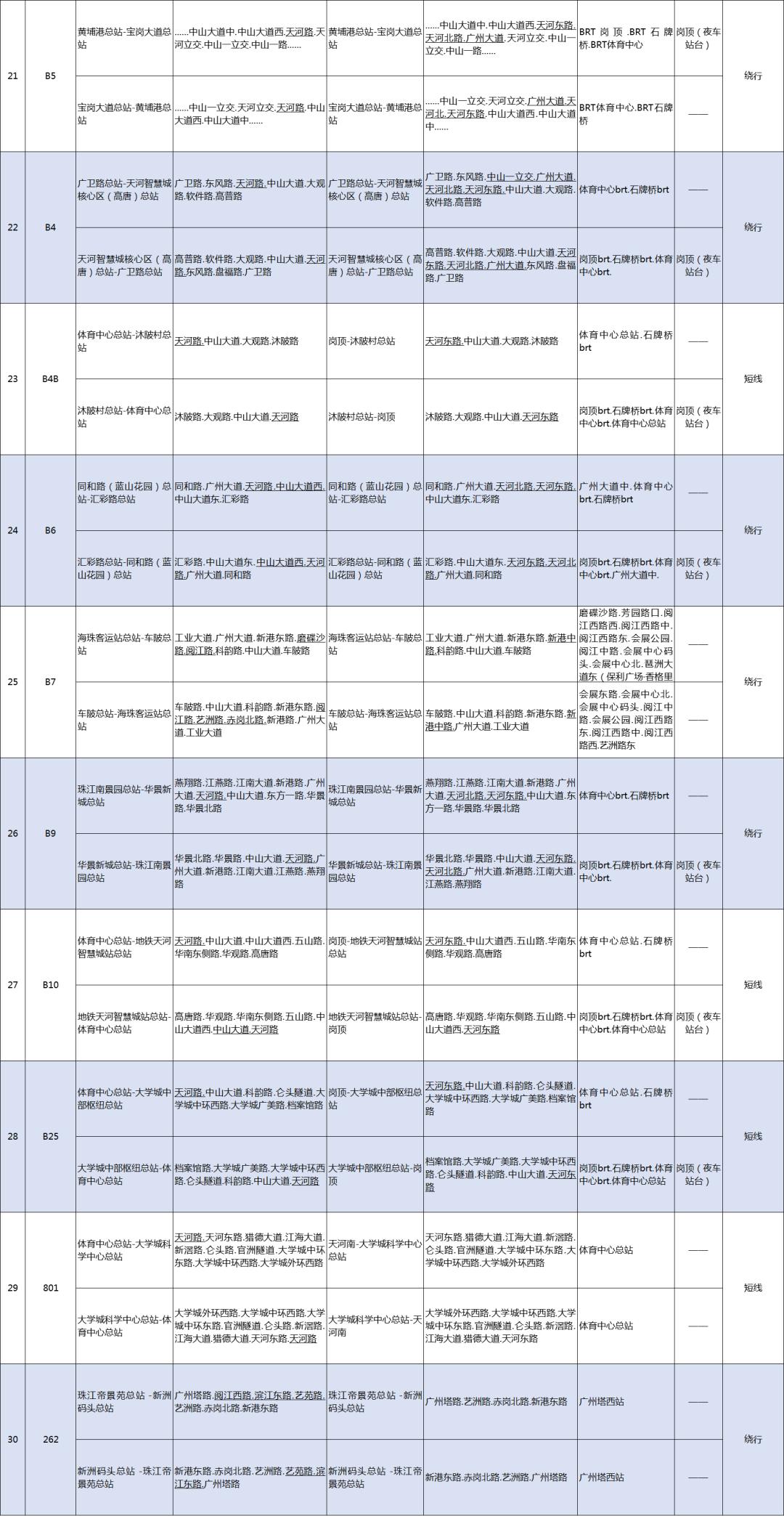 除公交线路外,有轨电车运营也将同步调整。据@广州有轨电车 微博消息,为配合残特奥会火炬传递活动,11月29日8:00-11:00(具体以实际情况为准),广州塔1号线暂停营运,待交通管制结束将恢复营运。11月29日海珠有轨电车1号线开始运营时间调整为12:00。