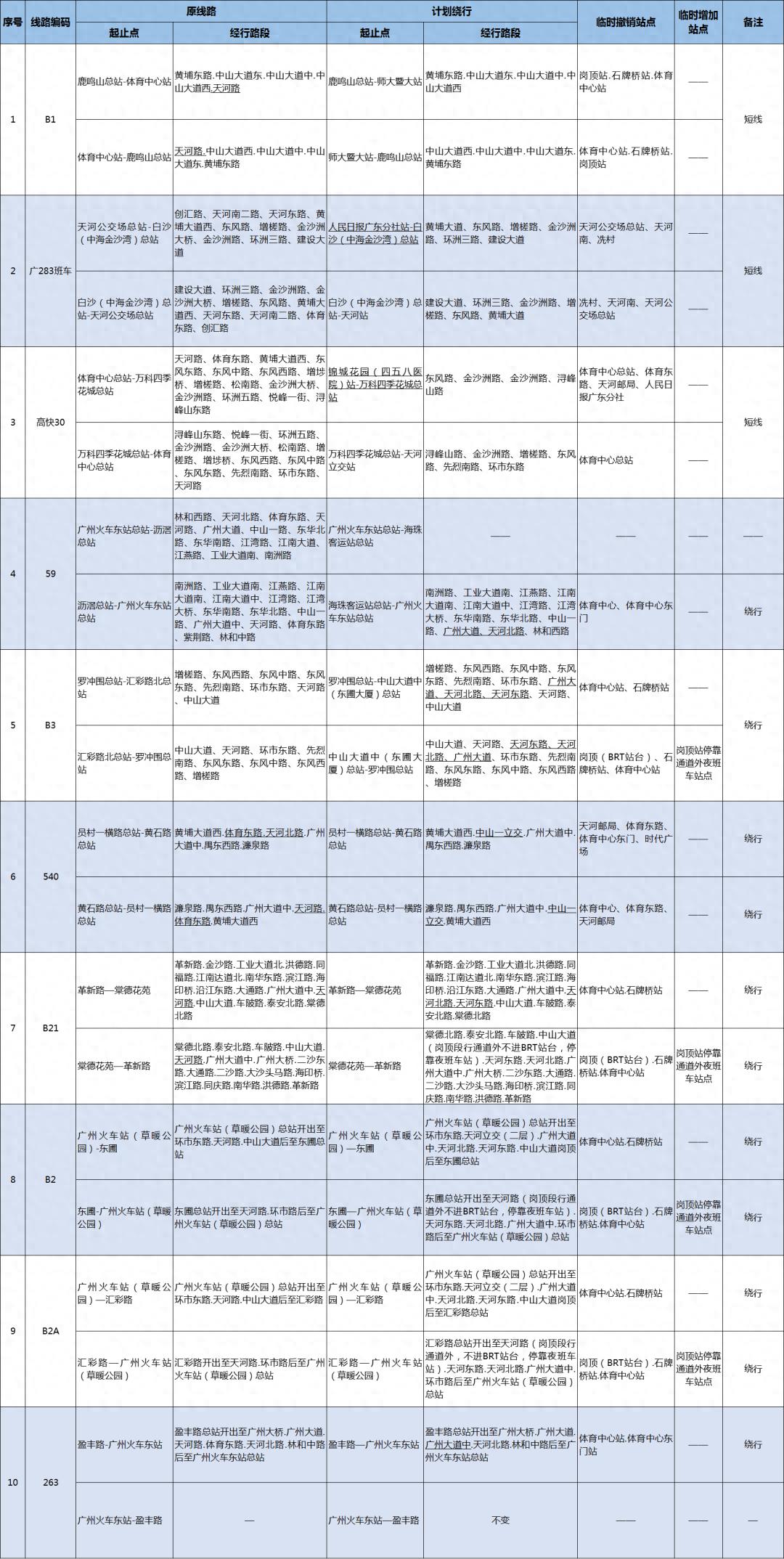 受交通管制的影响,广州市交通运输部门将对途经火炬传递活动路段公共汽车B1、B3、59路等39条线路和岗顶站、体育中心站、冼村站等77个站点进行临时调整,采取短线运作或绕道行驶等方式,保障市民公交出行。