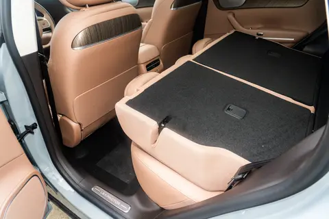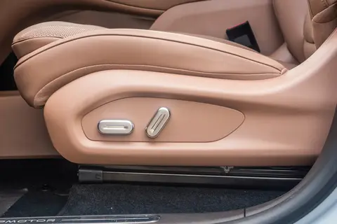 进一步看车内也很招人喜爱,有尤加利木纹饰件,看着质感都不错,而且还有50w无线充电功能,支持多款国内手机充电,满足用户出行充电需求。我当时还试了一下,手机充电的速度还是比较快。就连行李仓还有12V电源,既为车载设备提供电力支撑,又提升出行便利性。空间方面,提供5座布局。轴距为2930mm,为家人带来宽敞舒适的乘坐空间环境。就拿我而言,1米86的身高随便坐进前排,头离车顶有两拳半的距离,而腿部范围也达到了三拳半左右,大长腿可以任意摆放。整体座椅采用3D模拟移动,主驾驶的座椅有6项电动调节,腿部还有4项调整。还有更“贴心”的设计坐垫背部都具有通风、加热功能,还有8点SPA按摩功能,不仅能够让家人享受到四季如春的乘坐空间环境,即使开车久了按一按,特别放松。坐垫还加长了36mm,腿部的支撑那就更到位了。副驾驶给人真的就像头等舱一样,拥有超长的电动腿托,还可以4项调整,我把腿托打开更显得舒服。后排同样宽敞舒适,坐上三个1米76的成年男人也不会感觉到拥挤,哪怕是中间那个人,腿部也很宽敞。因为后排腿部空间超过900mm,搭配纯平地板设计,三人乘坐依旧舒适。同样具有头枕、腿托、加热、通风功能。配了21个大喇叭扬声器,采用了杜比全景声,使用了7.1.4音响布局,就连后排还有多媒体控制。我就喜欢音乐,马上就在车里唱起了《搀扶》,车内瞬间也变成了K歌分。不仅能够很好的体验到驾驶感,而且还能够提升驾驶乐趣。256色氛围灯,那在晚上可以跟着音乐节奏自动调节。这么丰富的配置,周末带着一家人去郊外游玩,孩子可以在车里听故事、听歌,减少了压抑感。让人真正的体验了美好生活与科技生活相融合,进一步提升驾驶乐趣。