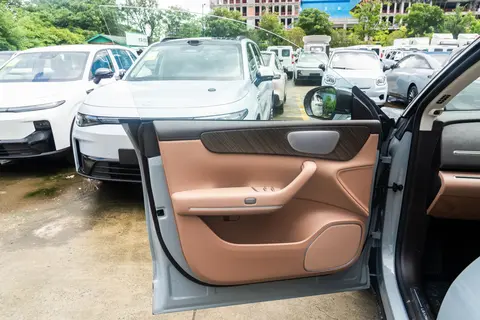 车身侧面线条流畅自然,无框车门是真挺吸引人啊,拉开门的那一刻,还真有点开豪车的感觉。隐藏式门把手与低风阻轮毂进一步优化空气动力学表现,降低风阻系数为0.28Cd。门把手收缩起来,显得干净利落,用起来也顺手。后排的隐私玻璃家人都很喜欢,平时带孩子出门坐在后面也不怕被外面人看到,而再大的太阳坐在车里也不会感觉到晒。溜背的线条角度大概30度,就有一点像自行车的选手,他们俯身骑车时的背部姿态,不但好看,又还符合空气动力学。车轮用的是20英寸20辐的轮毂,内外层的条辐排列也挺有规律,三叉型的线条从里到外变化显得有力量。车尾部分,贯穿式LED尾灯与前灯相互呼应,内部灯组采用3D立体设计,点亮后极具层次感。车尾中部LOGO稍微内凹,层次感分明,提升辨识度。提供新增的“雾凇米”在内8款车身颜色,雾凇米在阳光下泛着柔和光泽,视觉上显得清新雅致,而且不易显脏,提升车辆整体质感。还有光电白、松岚灰等配色,满足年轻消费者对个性化审美的追求。