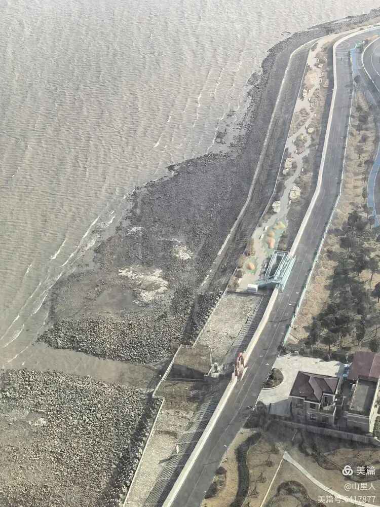 岸基线局部。海浪拍击的痕迹,新建海堤的步道,新建的马路,如果说尽收眼底,不如说是另类邀请---新的宝山版city walk已经召唤自己。