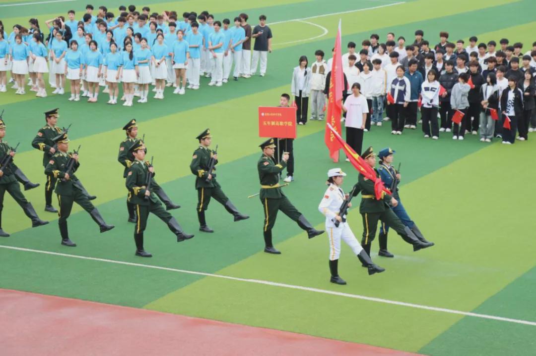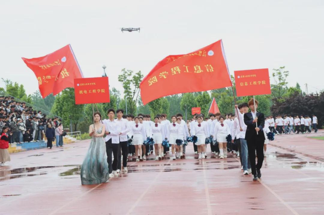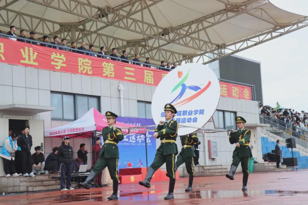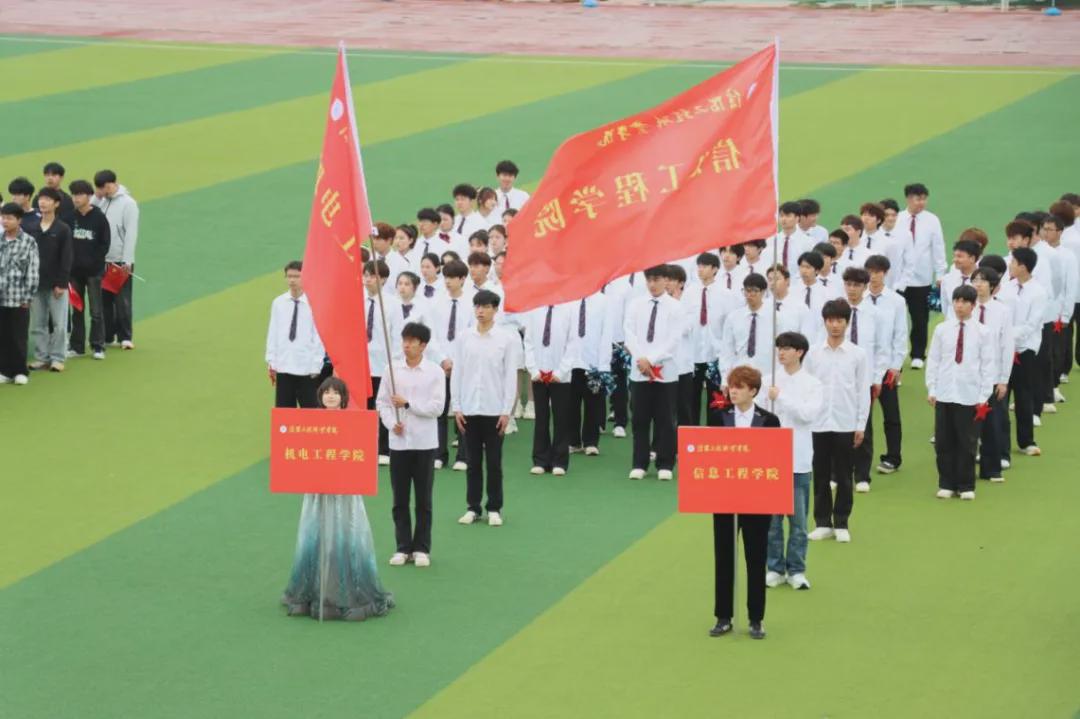上午8时30分,伴随着激昂的运动员进行曲,开幕式正式开始。国旗方队、校旗方队、会徽方队依次庄严入场,青年先锋营方阵、各班级方阵、裁判员方阵紧随其后。各方阵步伐整齐、口号嘹亮,展现出信工学子朝气蓬勃、昂扬向上的精神风貌。