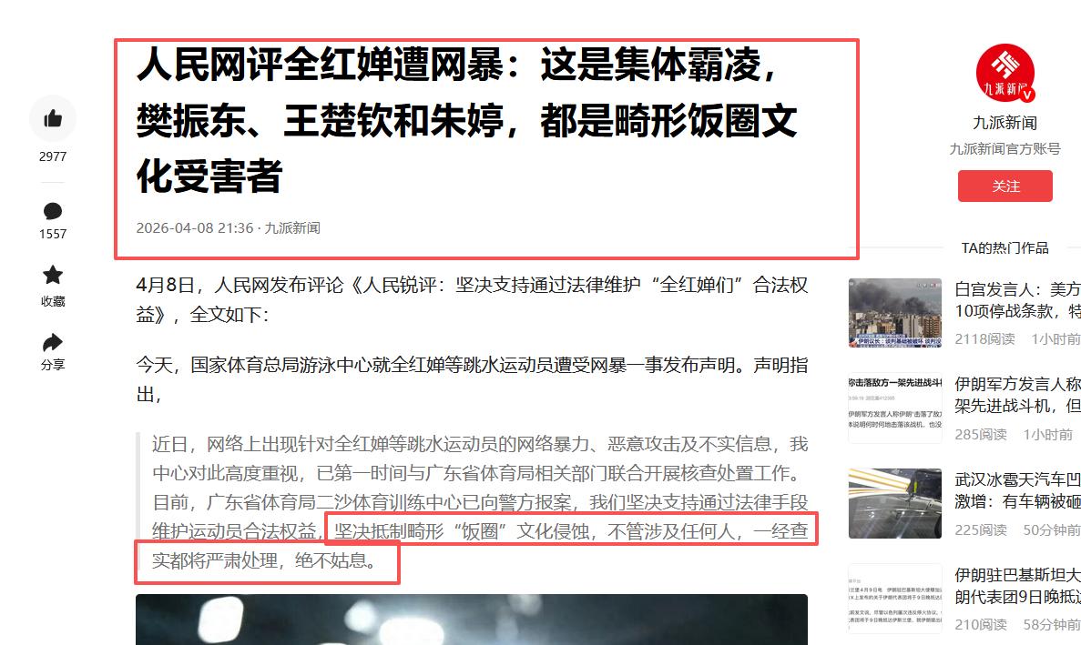 人民网更是锐评,这不是普通的网络口角,而是有组织、有预谋的集体霸凌,必须依法整治,让施暴者付出代价,还体育场一片清净。