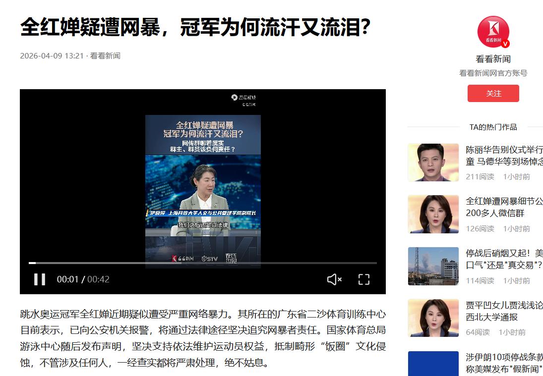人民网、央视新闻、新华社等权威媒体纷纷发声,力挺全红婵,谴责网络暴力和行业霸凌。