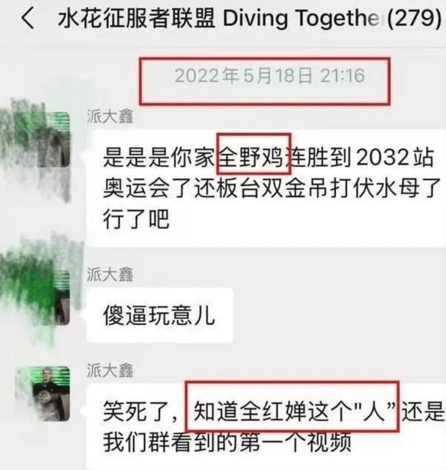 更令人不寒而栗的是,在这个群里居然还包含多位跳水界业内人士,他们彼此知晓身份,却没有一个人对群里辱骂霸凌全红婵的行为有过丝毫的自制。