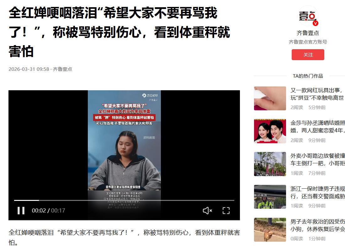 曾经在镜头面前,开朗爱笑,自在随意的全红婵,开始惧怕镜头不敢穿漂亮的衣服,对自己的身材极度不自信,甚至抗拒照镜子、上体重秤。