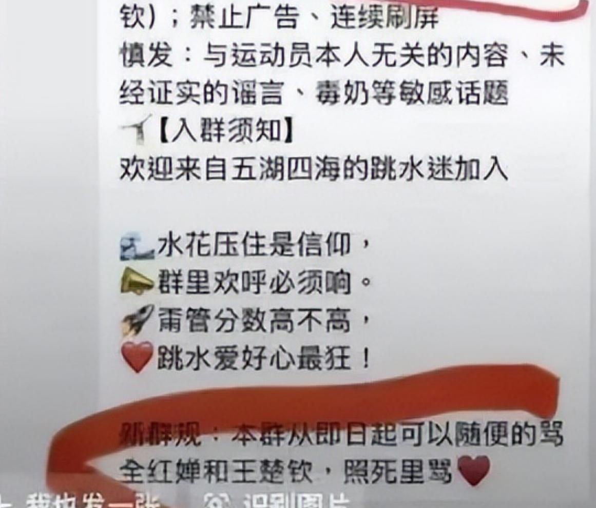 “本群从即日起可以随便的骂全红蝉和王楚钦,照死里骂。”
