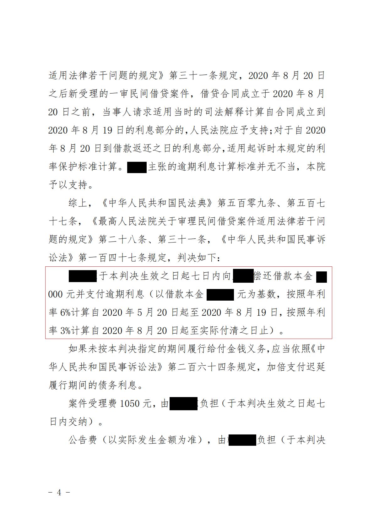 尽管被告经公告传唤未到庭,法院仍全面采纳原告方主张,认定双方存在合法有效的借贷关系,并支持了自2020年5月20日起按不同阶段利率计算逾期利息的请求。具体计息方式为:自2020年5月20日至2020年8月19日按年利率6%计算,自2020年8月20日起至实际清偿之日按年利率3%计算。案件受理费及公告费均由被告承担。