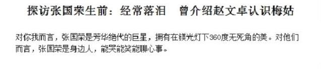 华西都市报:2013-03-22:探访张国荣生前:经常落泪 曾介绍赵文卓认识梅姑