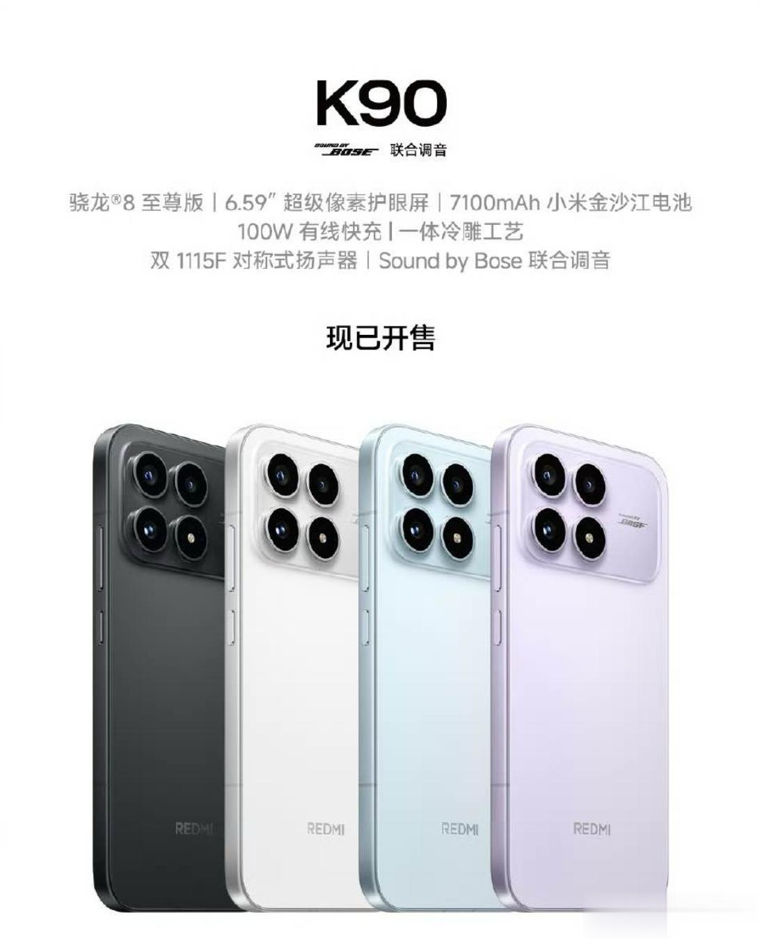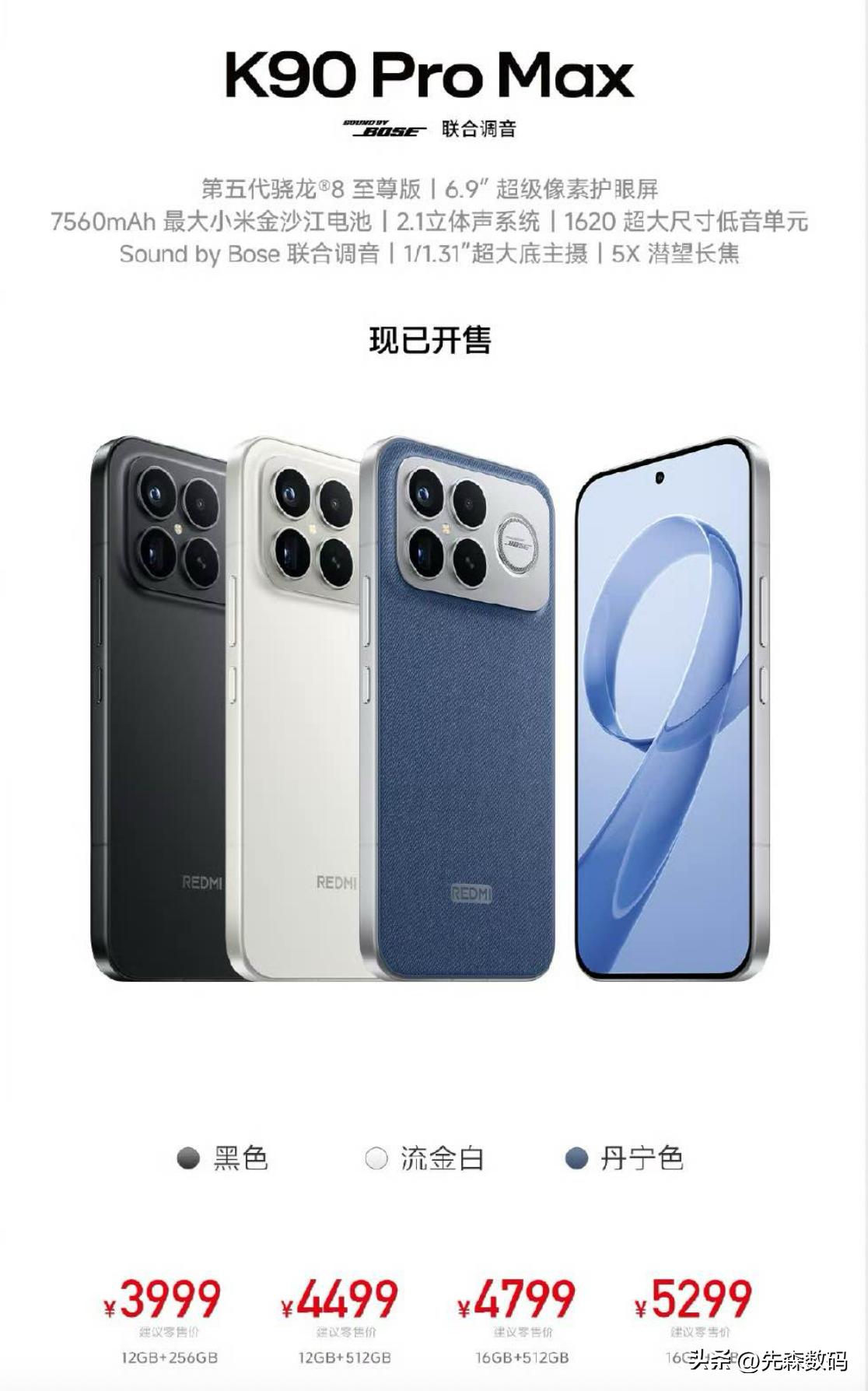 简单来说,K90ProMax之所以叫Max就是因为手机尺寸加大了,除了常规升级的处理器大电池这些,影像上发力稍微猛了一点点,在就是这次多了2.1声道,并且联名了BOSE,所以价格一下就上去了。