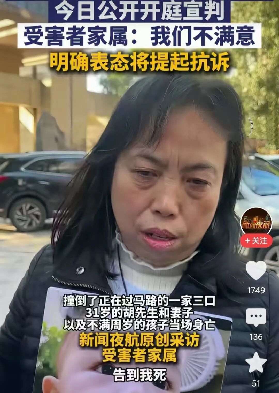 苦苦等了465天,1月9日,“一家三口被撞身亡案”受害者母亲、江西景德镇的胡女士终于等来了一审判决。