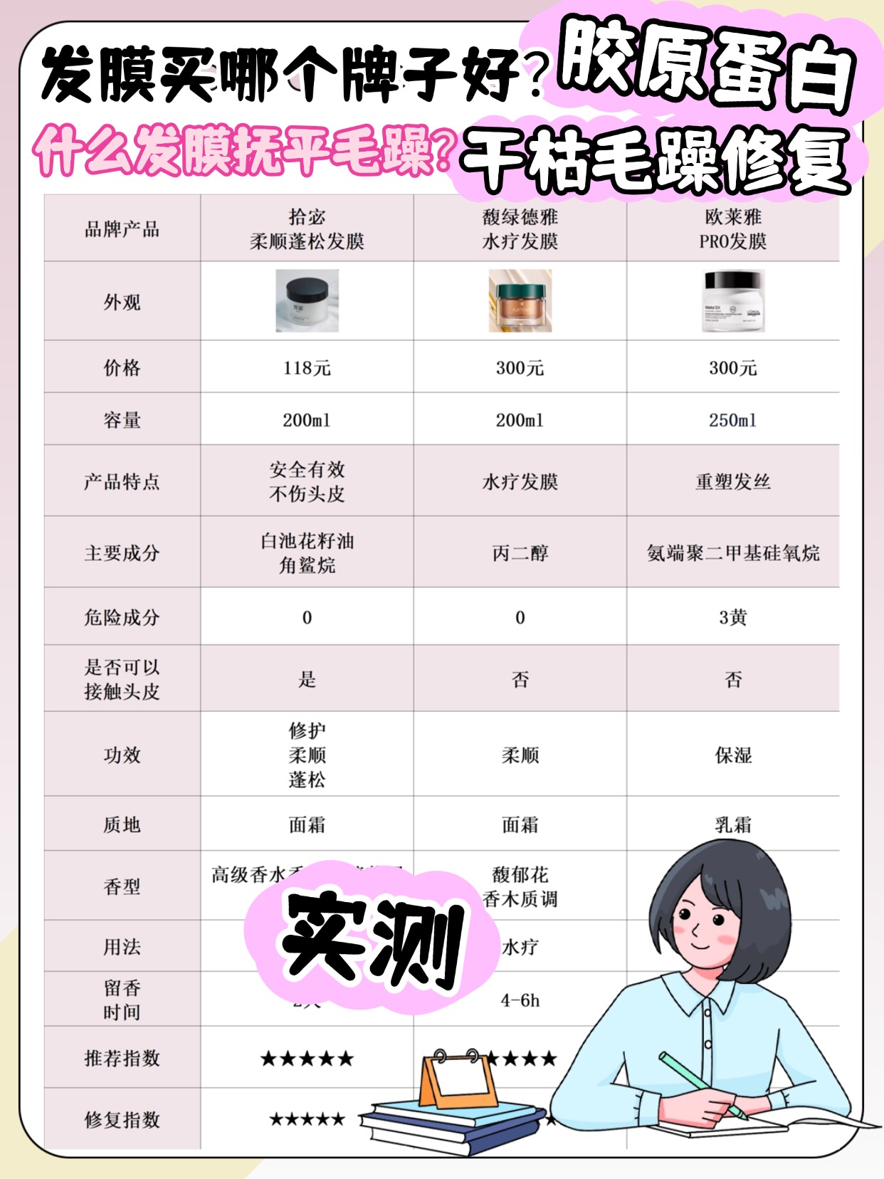 好多人纠结发膜买哪个牌子好,都想找干枯毛躁修复第一名、含胶原蛋白的,今天就结合实测分析,拆解胶原蛋白发膜的门道!重点解答发膜哪些成分安全好用(含胶原蛋白相关),还有发膜能改变发质吗,这俩点是选胶原蛋白修护发膜的核心,也是实测里最关键的知识点。含胶原蛋白的发膜,想真正修复干枯毛躁,胶原蛋白必须是有效添加,还要搭配水解蛋白、泛醇等成分,才能更好地填补发芯、修护毛鳞片,避开那些只标注“胶原蛋白”却排在成分表末尾的,基本是噱头,没什么实际效果。还有很多人以为胶原蛋白发膜能改变发质,其实不然,它只能深层修护受损发丝,让干枯毛躁的头发变顺滑强韧,没法改变天生的发质。我实测分析过不少胶原蛋白修护发膜,有的有效成分添加足,修护效果明显,有的却只是虚标成分,纯属营销造势。选胶原蛋白修护发膜,别被“修复第一名”忽悠,盯紧成分添加量和搭配成分,才是真的选对了。下面是我总结的一些发膜选购注意事项,干货满满,可以先赞收藏。