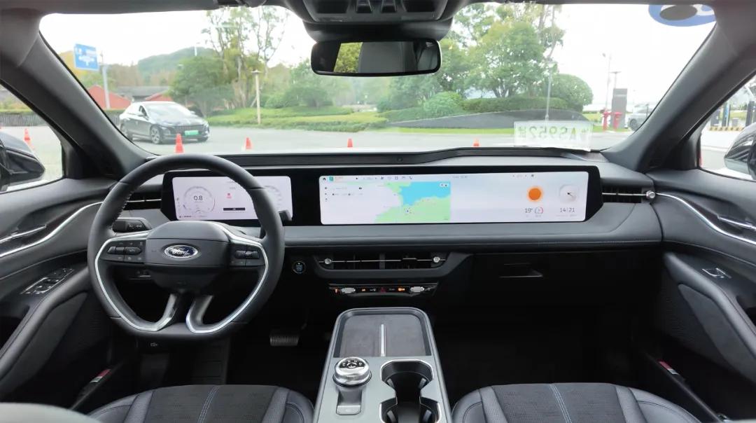 内饰部分,新款蒙迪欧依旧采用贯穿式带鱼屏设计,内置SYNC®+智行互联系统操作逻辑与当下的新能源车相同,而整个系统则是由高通8155芯片进行驱动,流畅性不错。空调使用了实体滚轮进行操作,前排中央岛台改成了悬浮式结构,储物空间布置更合理。后方是两个放手机的面板,左侧支持50W风冷无线充电。福特标志性的换挡旋钮没有变化,右侧则是两个杯架。