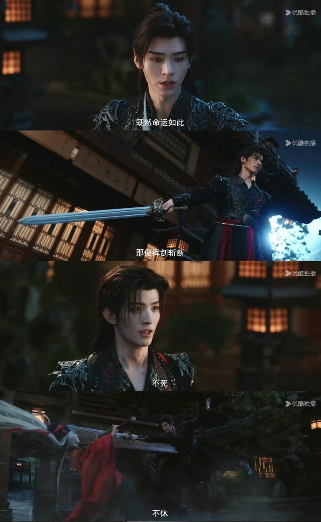 而正是以墨夜为画幕,主创们进行着打斗设计与特效制作的升级,让这部剧奉献出了又一批效果惊艳的视觉奇观。根据总导演尹涛的构思,相比前作,《暗河传》在少年锐气的基础上,更聚焦江湖险恶与人性博弈,因此为服务于人物塑造,打戏上更强化了杀意,动作设计更写实凌厉。典型如苏暮雨的十八剑阵,水滴化剑,阵型利落,升起于夜空之中,极致的映照中更显锋芒。