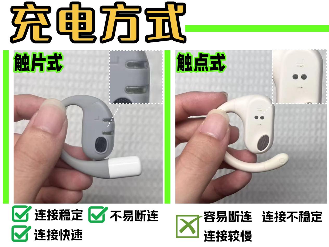 充电方式是独创的触片式,相比传统触点式充电,接触面积更大,充电速度更快、更稳定,还能减少接触不良和断连的情况。只需按三下功能键,就能开启防漏音模式,操作简单便捷。