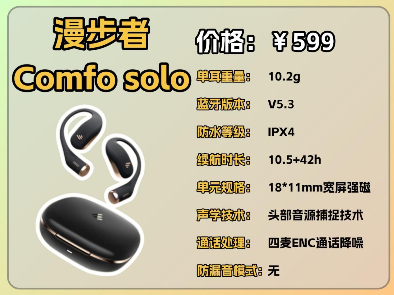 总结:漫步者 Comfo solo 在声音细节和空间感上优势明显,适合对音质氛围感有要求的用户。