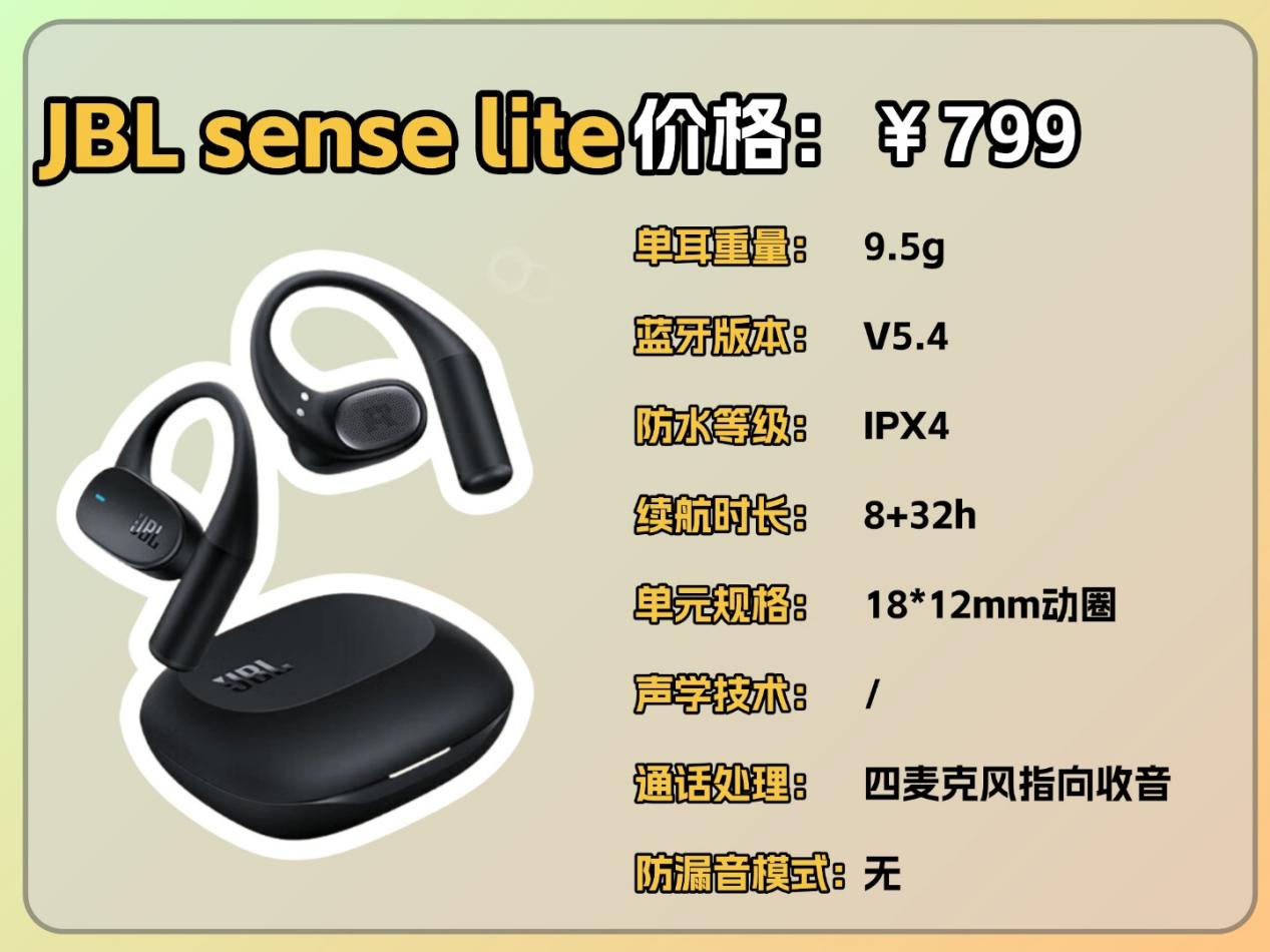 总结:JBL-senselite 音悦圈舒适版在佩戴舒适度和针对眼镜用户的适配性上表现突出,适合戴眼镜的用户日常使用。