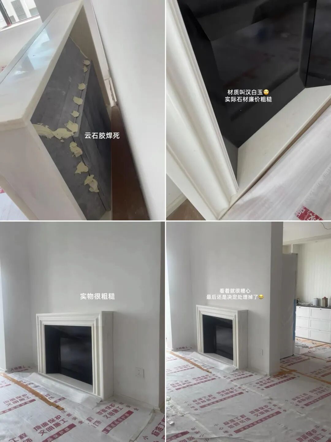 还有很多网友家想做超美的壁炉,结果工艺太差,安装完,一整个心碎了……一点高级感没有不说,反而冷冰冰阴森森的,好一阵子因为这个破壁炉连房子都不想进去了。