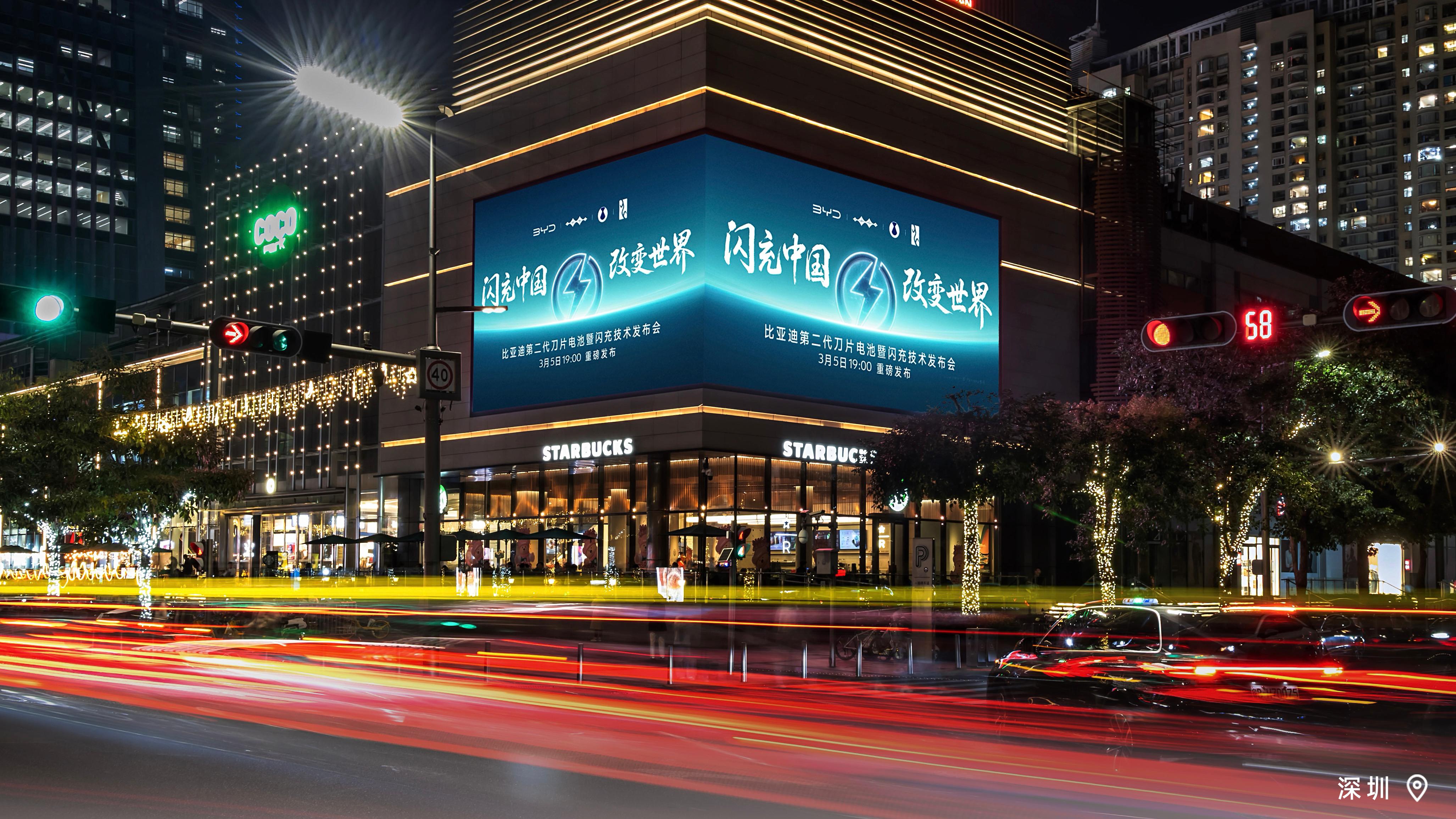 比亚迪是真的猛,直接把全国好多城市的商圈大屏都包下来了,一眼看过去全是它。