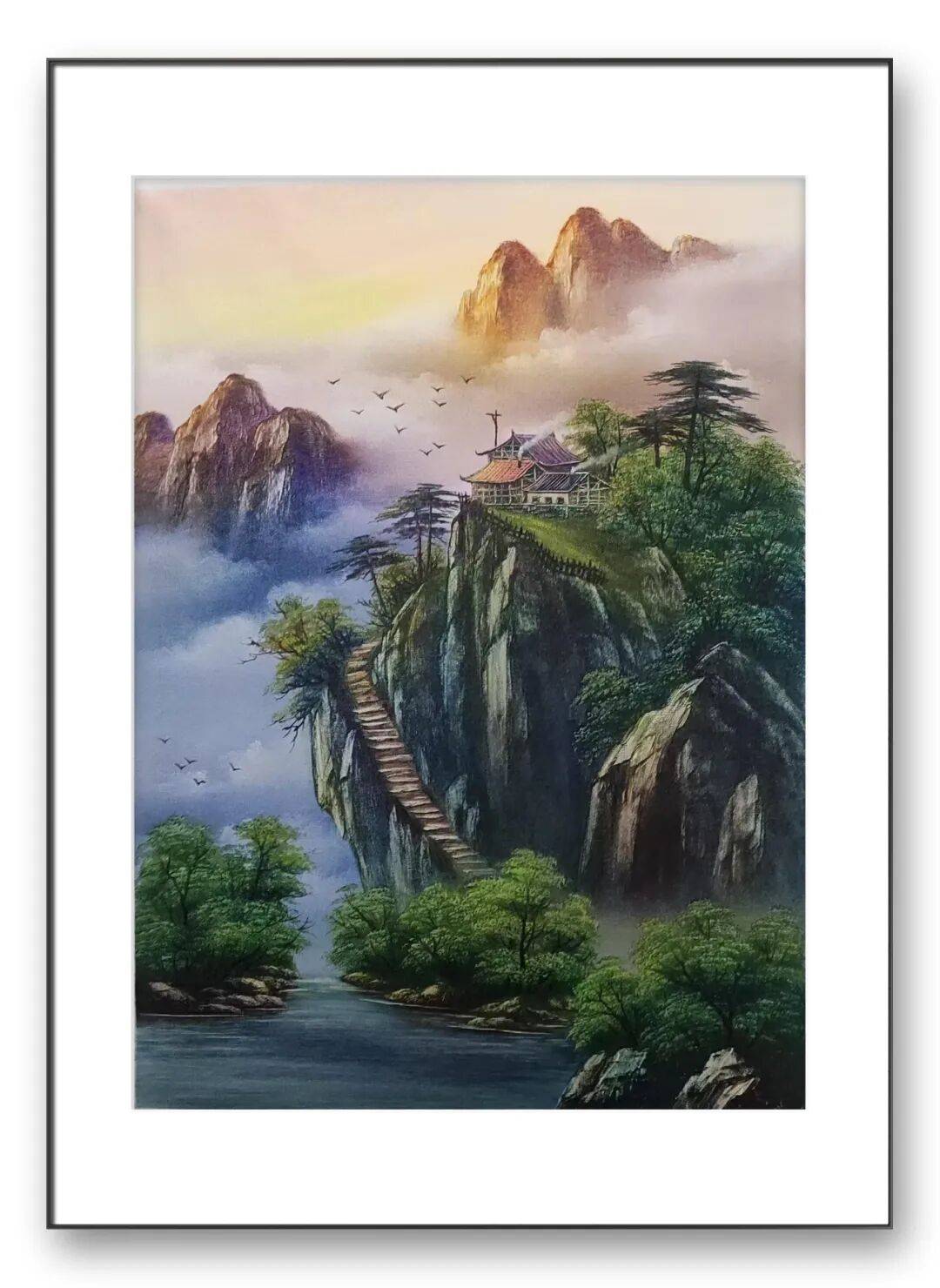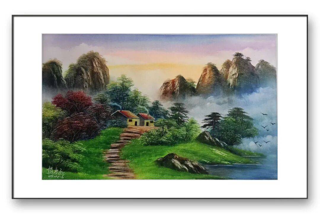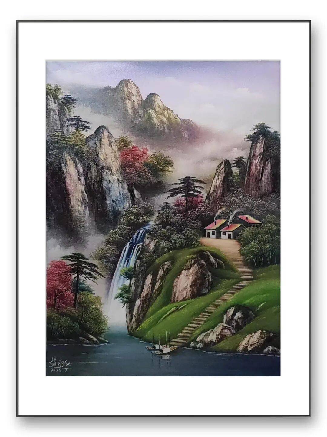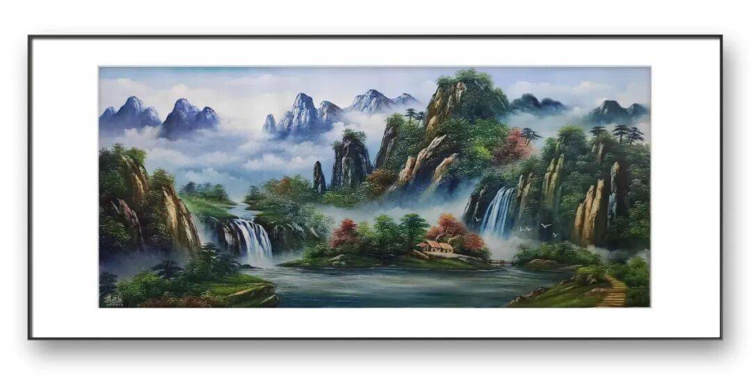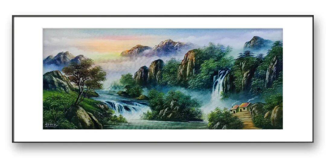 在艺术精神层面,赵永红的刀笔油画深度契合了中国画“天人合一”的哲学意蕴。其风景作品多以自然山水为创作题材,注重对山水意境的营造与情感的抒发,而非对自然景观的简单复刻。画面中,山峦、云雾、江河、草木并非孤立存在,而是相互交融、浑然一体,形成一种充满生命力的整体气场,传递出中国人对自然的敬畏与对和谐之美的追求。这种意境的营造,正是中国画精神内核的体现,使得刀笔油画虽采用油彩颜料,却始终散发着浓郁的东方文化气息。与此同时,作品又兼具西方油画的质感与立体感,通过油彩的厚重堆积与光影的精准表现,让山水景物摆脱了传统中国画“平面化”的局限,呈现出强烈的空间感与体积感。观者在欣赏作品时,既能感受到东方绘画的意境之美,又能体验到西方油画的视觉冲击,这种双重审美体验,正是中西艺术融合的最佳诠释。