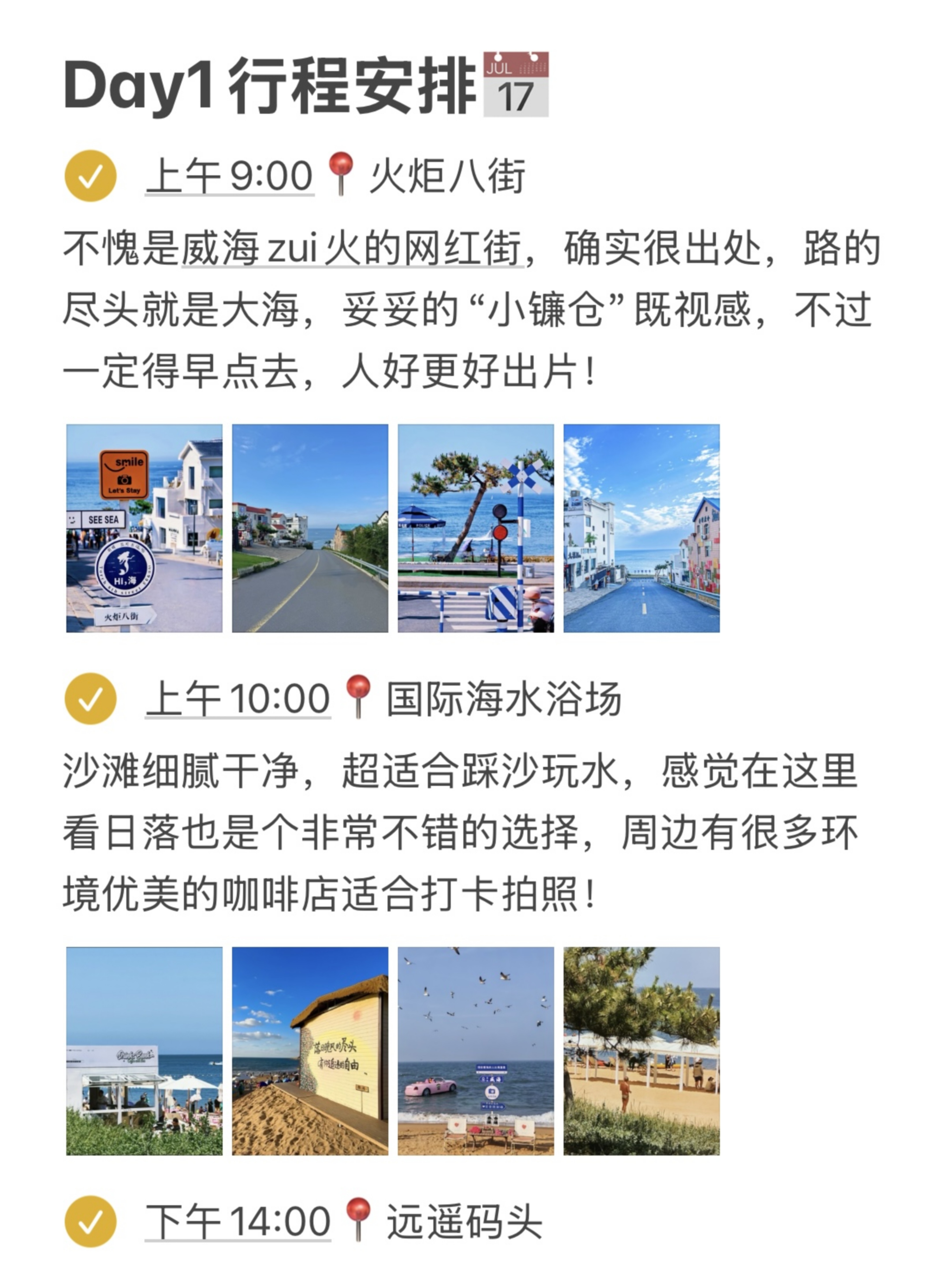 📆威海3天2晚行程路线DAY1️⃣:火炬八街-国际海水浴场-远遥码头-金海湾栈桥-小石岛