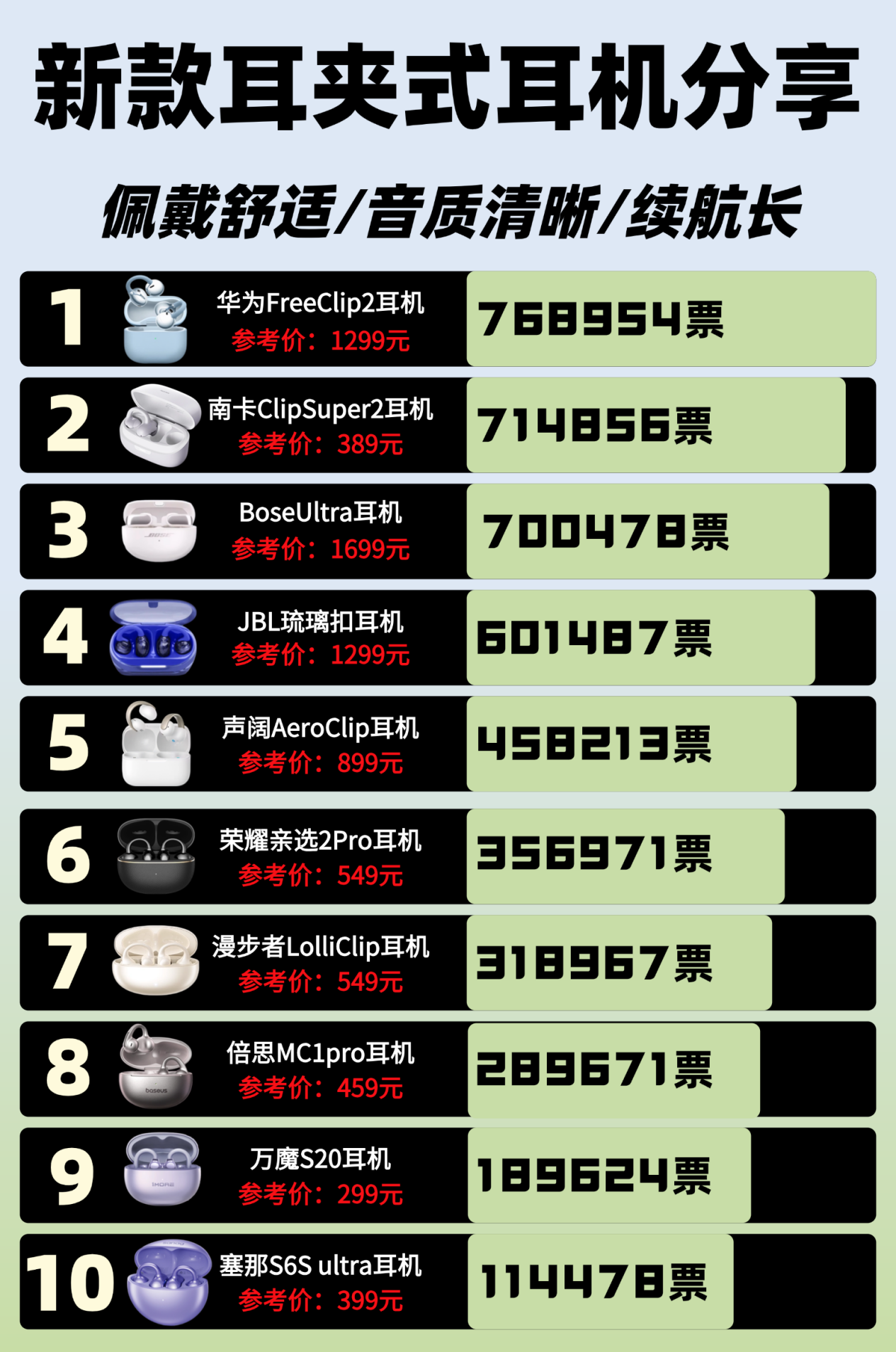 推荐理由:价格亲民,功能齐全,适合初次尝试耳夹式耳机的入门用户。