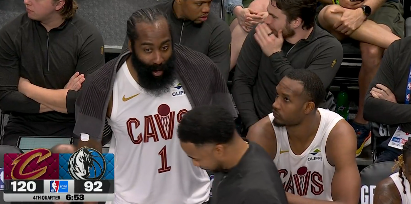 末节米切尔先带着替补阵容打,之后哈登上场带队比赛,比赛还剩6分53秒骑士120-92领先28分,哈登下场休息,骑士替补席一片轻松,比赛彻底沦为垃圾时间,最终骑士稳稳拿下一场大胜。