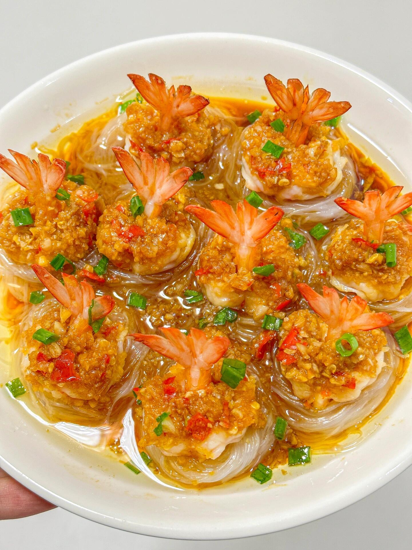 这道菜灵感嘛,其实来源于我对美好生活的向往。粉丝缠绕着虾,就像财富缠绕着我们,寓意着腰缠满贯;而虾尾开出的花型,又像是富贵之花在餐桌上绽放,寓意着花开富贵。这样的好意头,怎能不让人心动呢?