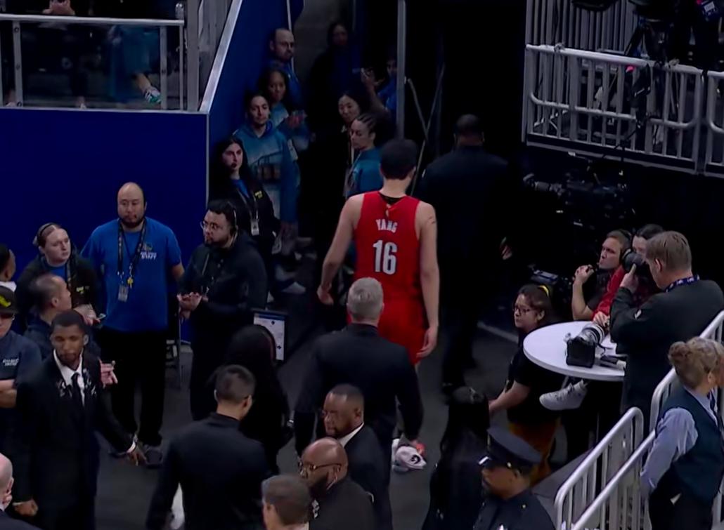 末节对决中,杨瀚森再度登场,却在抢球过程中受伤离场,经短暂检查后坚持回归赛场战至终场。最终勇士稳稳守住优势,将比分定格为119:97。