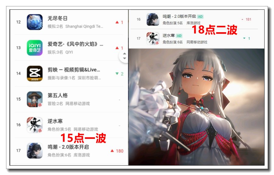 不难发现,看鸣潮2.0流水笑话的人着实不少,甚至在拉踩下,论坛、社区间主导了多次舆情风暴。不管怎么说,鸣潮2.0在巨量宣发背景下,网络上的预估移动端(ios榜单排名)成绩没达到玩家的期待是事先入为主的实。