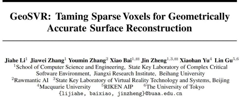 北京航空航天大学百晓团队、Rawmantic AI、麦考瑞大学、RIKEN AIP 与东京大学的团队给出了他们的答案:GeoSVR (Geometric Sparse Voxel Reconstruction) —— 一种全新的显式几何优化框架,探究稀疏体素的潜力,在几何准确性、细节捕捉和完整性上全面超越现有方法。