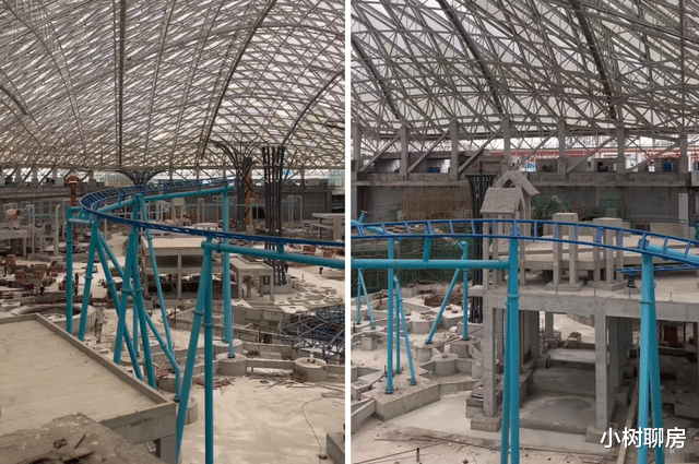 至于室内部分,目前刚完成水泥框架等结构设施,室内装修才刚刚启动,游乐设备也没有完全进场。