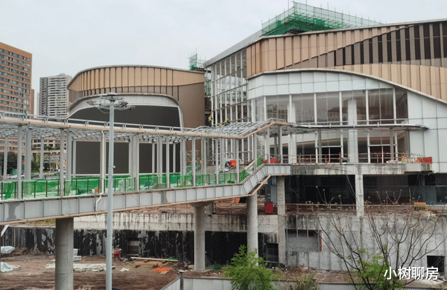 这是中国摩大门复工前后对比,可以看到连接地铁的空中廊桥已现雏形,将商业与举人坝地铁站有效连为一体。