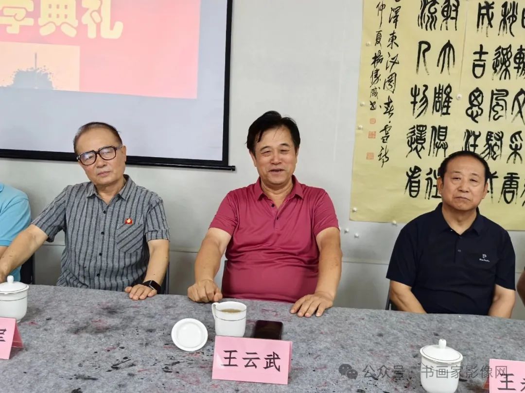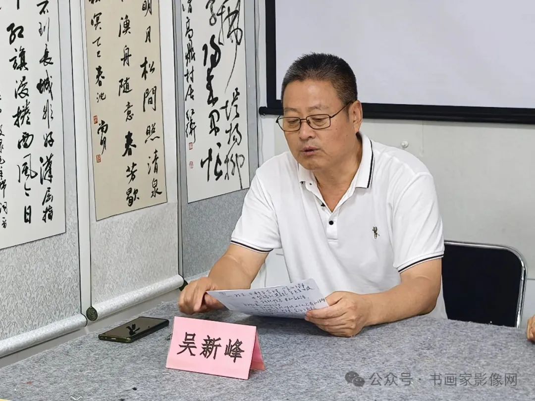 王云武主席讲话,他说,书法作为中华文化的瑰宝,在新时代背景下,新闻出版书法协会的会员,不仅要提高艺术水平,更要强化政治意识,坚持“以人民为中心”的创作导向,通过书法作品传递正能量,弘扬主旋律;坚持“弘文传道守正创新”的核心理念,创作出更多具有时代特色的优秀书法作品,为新时代大局服务,为文化强国服务。