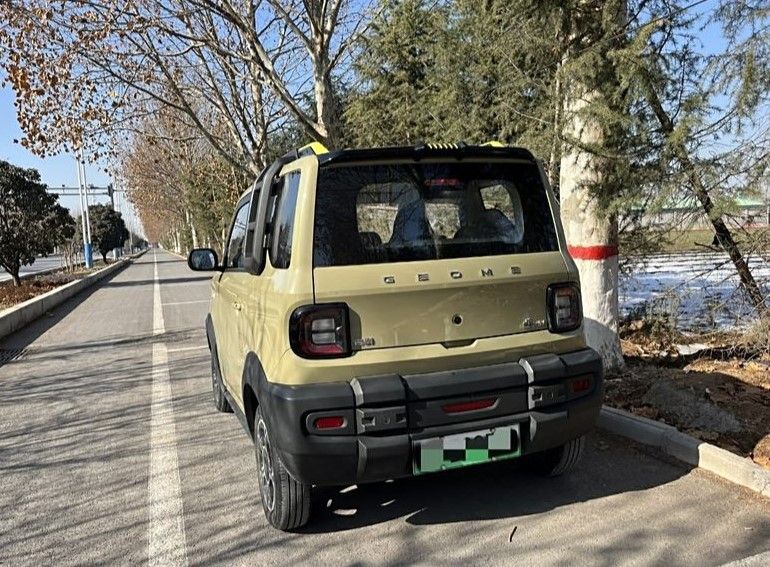 5.出门一定要拍照,吉利熊猫骑士的外观完全满足我的需求。方正的车身造型配合深绿色的车漆,酷似越野车。尤其是车顶行李架、位于车侧的爬梯,营造出的野性十足的气势,车辆黑色的前后包围与尾翼,既体现了车辆的力量感,又增加了整车的运动氛围,这种外观设计在微型电车市场里只有熊猫骑士有。