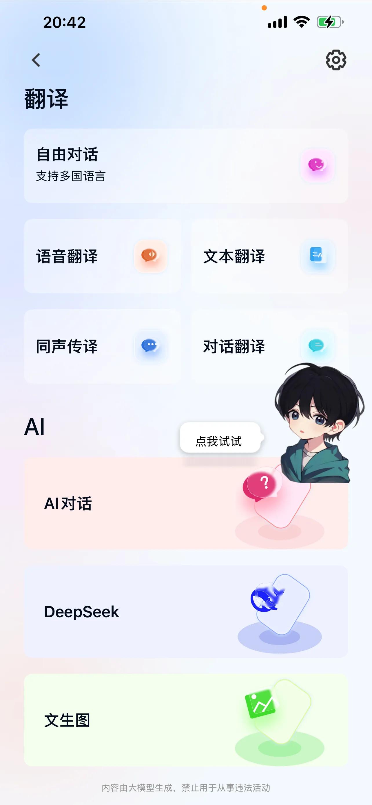 值得说明的是,南卡OE Wing可以连接NANK专属APP,通过APP可以进行按键个性化设置,也可以自定义EQ,还可以选取音乐模式或游戏模式。除此之外,南卡APP内还有随身AI智能功能,它深度整合了讯飞×DeepSeek多模态AI引擎,能够实时翻译、对话、搜索、语音助手、内容创作辅助等,省心有省力,提升了工作和生活效率。外出不熟悉的环境时可提供攻略;出国时可实时语音翻译,不用担心无法和国外友人沟通。