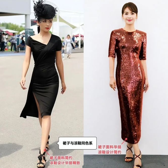 其他需要注意的地方就在于鞋子,有很多中年女性在搭配裙子的时候都会选择平底鞋,然而这样的想法本身就是错误的,因为我们在搭配裙子的时候一般都会选择能够修饰身材的裙子,如果在这个时候选择平底鞋的话,那么就会让下半身的身材看起来不够显眼,这样一来就会呈现出腿短的一面。所以在选择搭配的时候进一步的体现就应该体现出腿部的修长感,所以在这个时候最应该选择的就是高跟鞋高跟鞋不仅能够呈现出性感高挑的一面,最主要的是还能够拉长腿部的比例,让整体的造型拥有着更多的亮点。