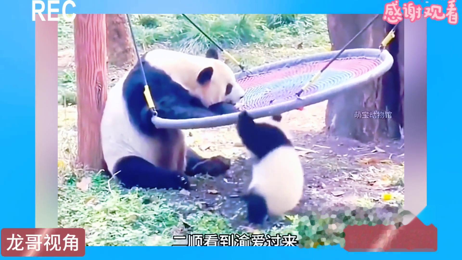 即使是出外场,二顺也会背着饲养员偷偷的把渝爱带出来。奶爸看到后拿着小苹果连哄带骗才把二顺喊回去。渝爱还是一个小奶团子的时候一扭一扭的去找妈妈。二顺看到渝爱过来就把秋千压低让渝爱爬上去。二顺看渝爱时满眼都是宠溺,母女俩一起贴贴。