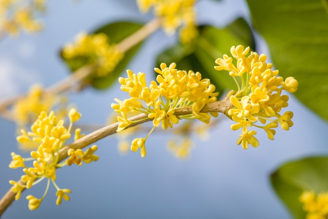 清晨,漫步在公园的小径上,空气中弥漫着淡淡的桂花香。那香气,是甜丝丝的,仿佛是大自然精心调配的香水。抬眼望去,几棵桂花树宛如亭亭玉立的少女,满树的桂花星星点点,如金色的繁星镶嵌在翠绿的枝叶间。微风轻拂,桂花纷纷扬扬地飘落,像一场金色的雨,洒落在地上、肩上、发间。我轻轻拾起一朵桂花,放在鼻尖,那浓郁而又清新的香气瞬间沁入心肺,让人陶醉其中,仿佛所有的烦恼都被这香气一扫而空。