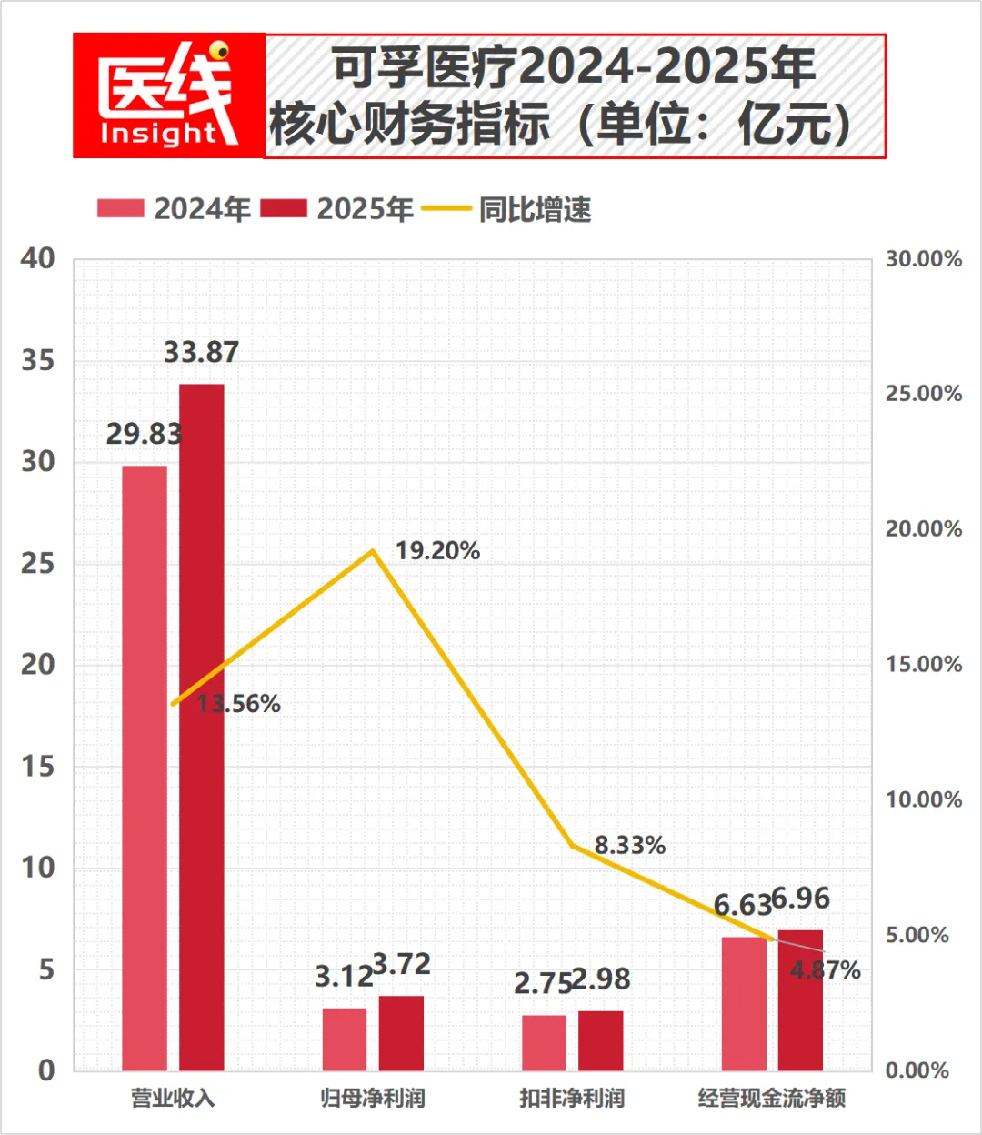 财报显示,可孚医疗2025年全年实现营收33.87亿元,同比增加13.56%,归母净利润3.72亿元,同比增加19.20%;扣非净利润为2.98亿元,同比增加8.33%。