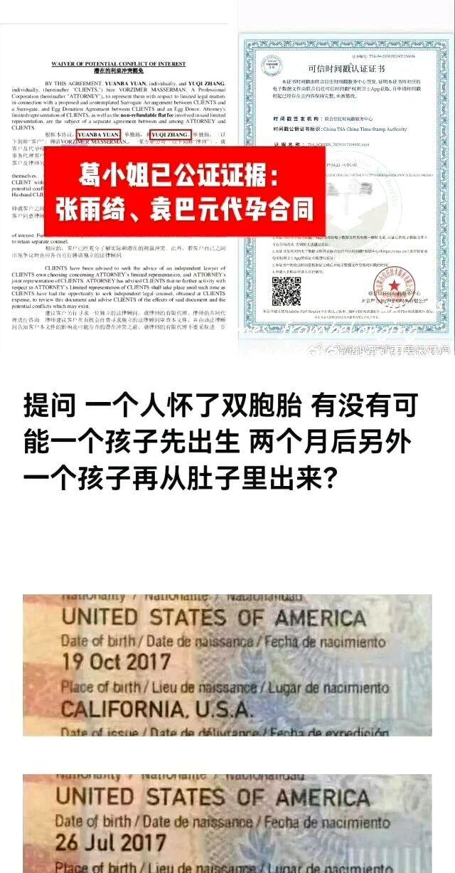 可真正让舆论沸腾的,是后来葛晓倩甩出来的代孕质疑。葛直接放大招,拿出了美国代孕合同和带孩子出生信息的护照。最辣眼睛的是双胞胎的出生日期,相差近三个月——这怎么合常理?大家没吃过猪肉也见过猪跑,自然双胞胎闹个把星期的差错还能理解,间隔仨月,这不摆明着给围观群众添把火嘛。葛晓倩更杠,把医疗记录、孕期照片全点名要张雨绮晒出来,质问得锣鼓喧天。网上倒是有段时间冲上热搜,说什么张曾经公开过孕照和出生证明。这事儿葛又追加第二波,“有本事再晒一遍,别只让经纪人隔空发个背影。”有的网友扒出,发照片的那位经纪人杨天真,不知啥时候莫名其妙把照片撤下架,这一操作,吃瓜群众反倒觉得有事儿。