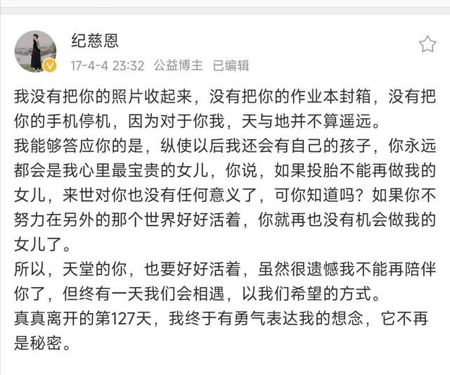 人的终点终究是死亡2019年时,纪慈恩第一次被确诊患上了脑癌,其实她患癌早就是有预料的。