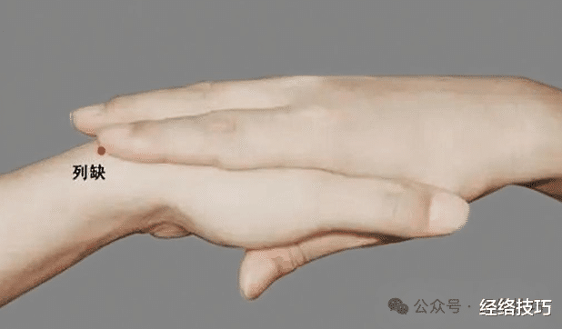 双手虎口相交叉,一只手食指搭在另一只手手腕上,指尖下面的骨头缝就是列缺穴,古人说“头项找列缺”,它和头颈部关系密切。
