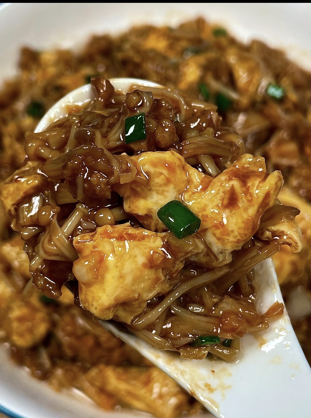 当这道菜端上餐桌,热气腾腾,香气扑鼻。夹起一筷子,金针菇的爽滑、鸡蛋的嫩滑与肉末的香酥在口中交织,酱汁的味道渗透其中,每一口都是一种享受。它用最朴实的方式,诠释了家常菜的魅力,让人回味无穷。愿这道简单的美味,能为你的餐桌增添一份色彩,也为你的生活带来一份小小的幸福。