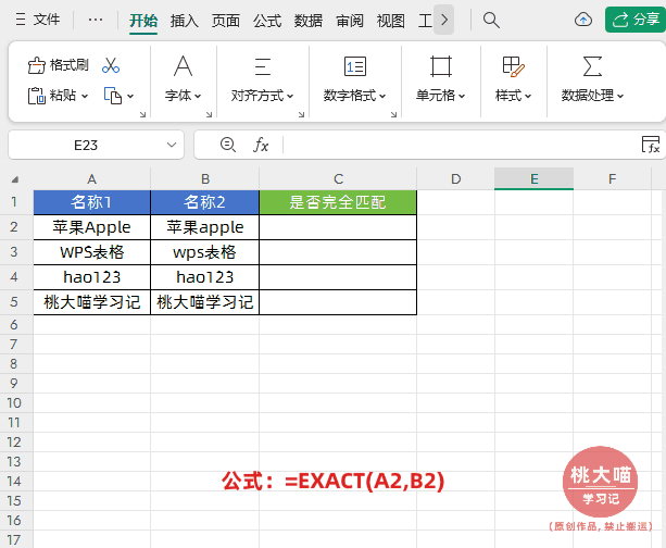 EXACT函数用法总结: