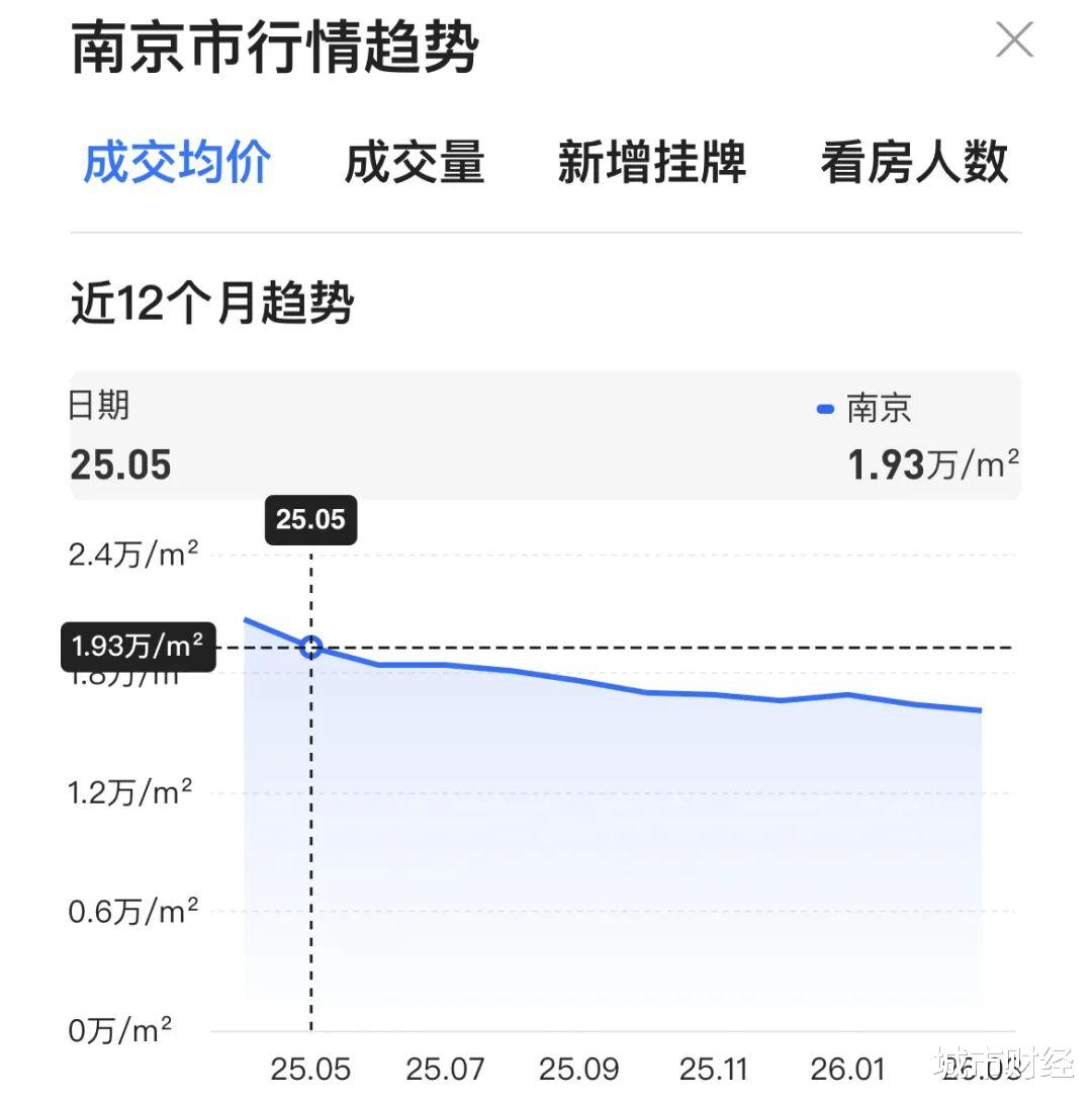 从贝壳找房追踪的实时成交数据来看,2025年5月南京二手房成交均价正式跌破2万元,到今年3月份,成交均价已经跌至1.61万元/平方米。