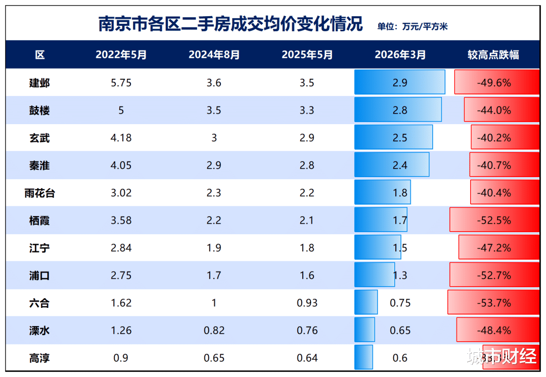 如今,四大主城区均价均跌破3万,雨花台、栖霞、江宁、浦口均跌破2万,六合、溧水跌破万元。
