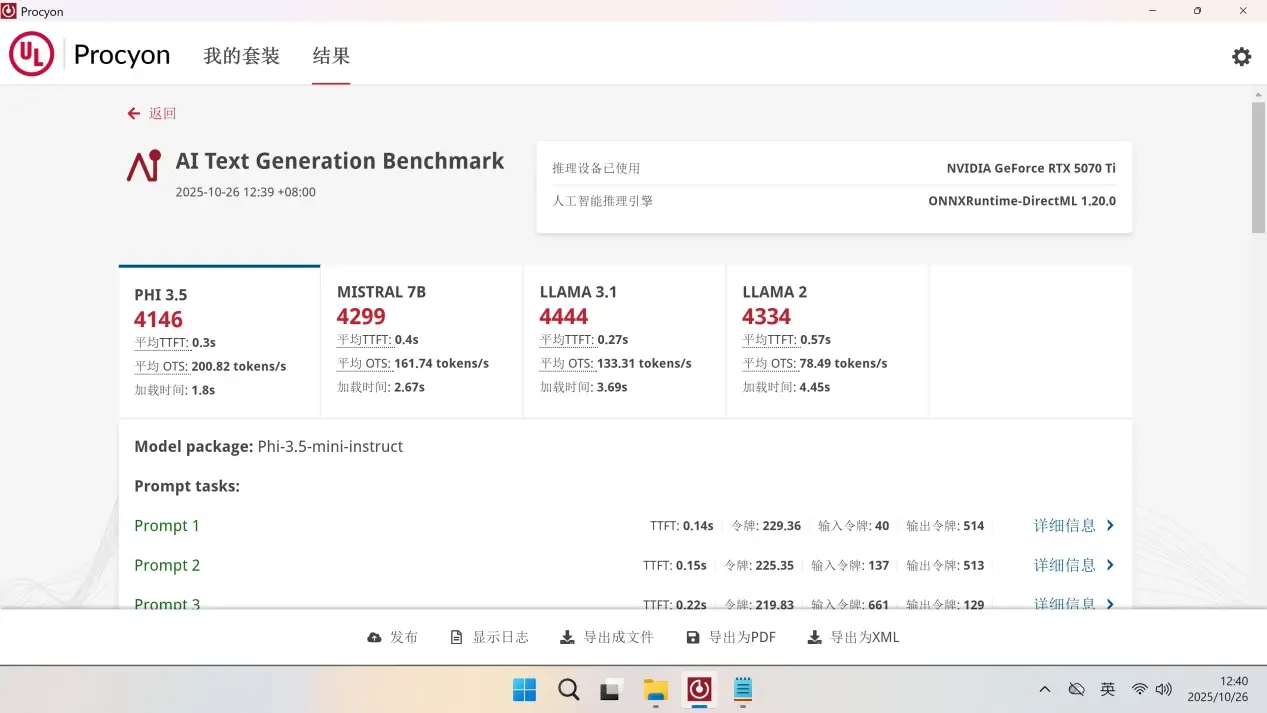 Procyon基准:LLAMA 3.1平均生成时间0.27s/token,PHI 3.5达200+ token/s