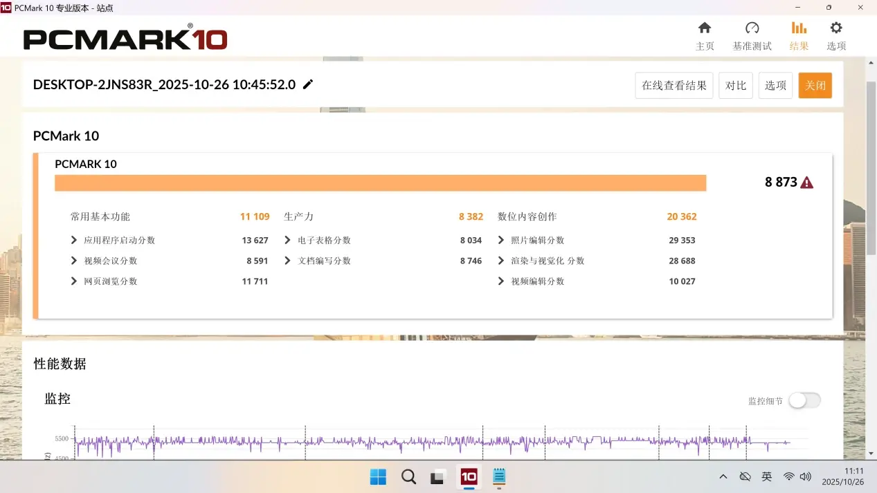 PCMARK 10综合分数:8873,流畅覆盖日常办公、创意设计场景。