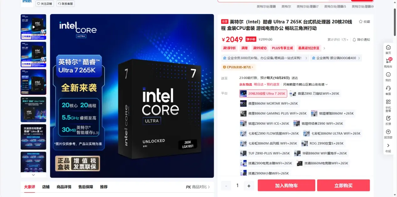 Ultra 265K支持IPO超频,对供电要求不低,我一向主张“好钢用在刀刃上”,主板选得好整机都能多活几年。综合看下来,目前某东1199的七彩虹CVN Z890M GAMING FROZEN 战列舰是目前最理想搭档。